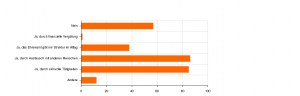 Die Ergebnisse unserer Umfrage haben wir auch statistisch ausgewertet, um noch mehr interessanten Fragen auf den Grund gehen zu können und einen möglichen Zusammenhang zwischen einzelnen Fragen und Antworten zu finden. Besonders interessiert hat uns dabei, was aktuell dazu führt, dass Menschen gerade mehr oder weniger ehrenamtlich aktiv sind. Demnach haben wir drei Kategorien an Faktoren herausgefunden: Faktoren, die sich gerade positiv auf das momentane ehrenamtliche Engagement auswirken; Faktoren, die das momentane Ehrenamt behindern und zuletzt Faktoren, die keinen Einfluss auf das momentane ehrenamtliche Engagement zu haben scheinen.