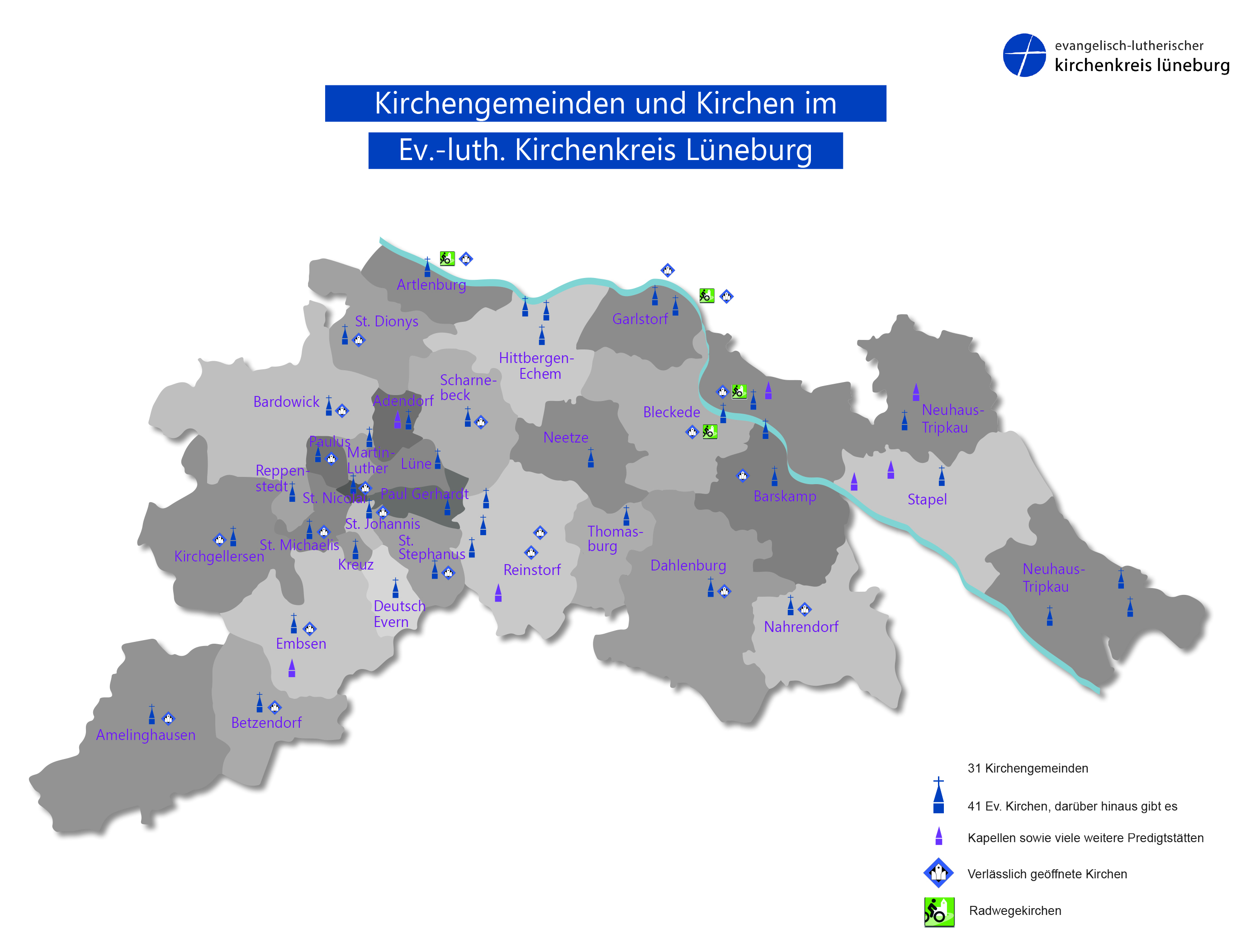 Kirchengemeinden und Kirchen im Ev.-luth. Kirchenkreis Lueneburg